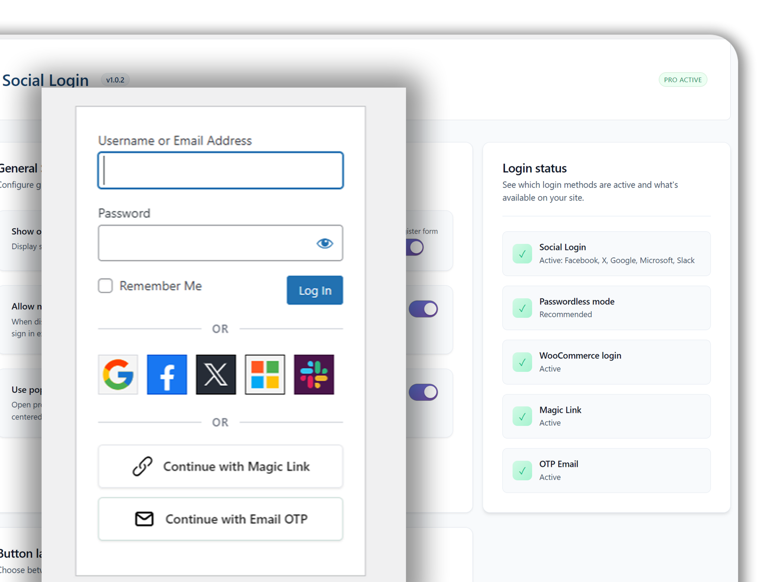 Combine social login, Magic Link and Email OTP into one unified login system that works across WooCommerce, LMS and membership plugins.
